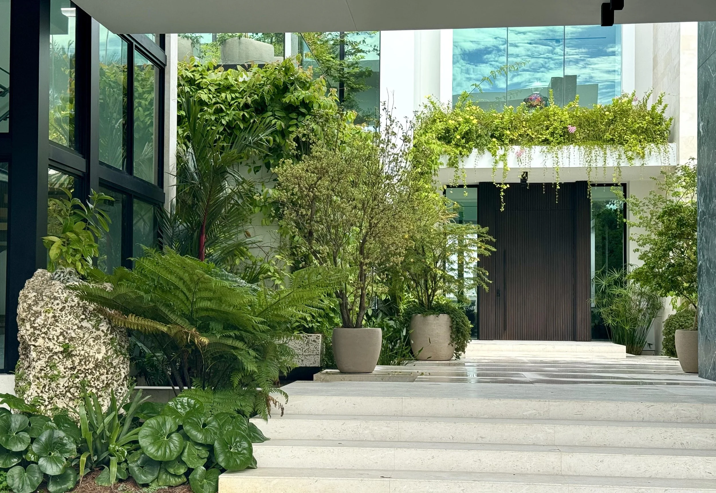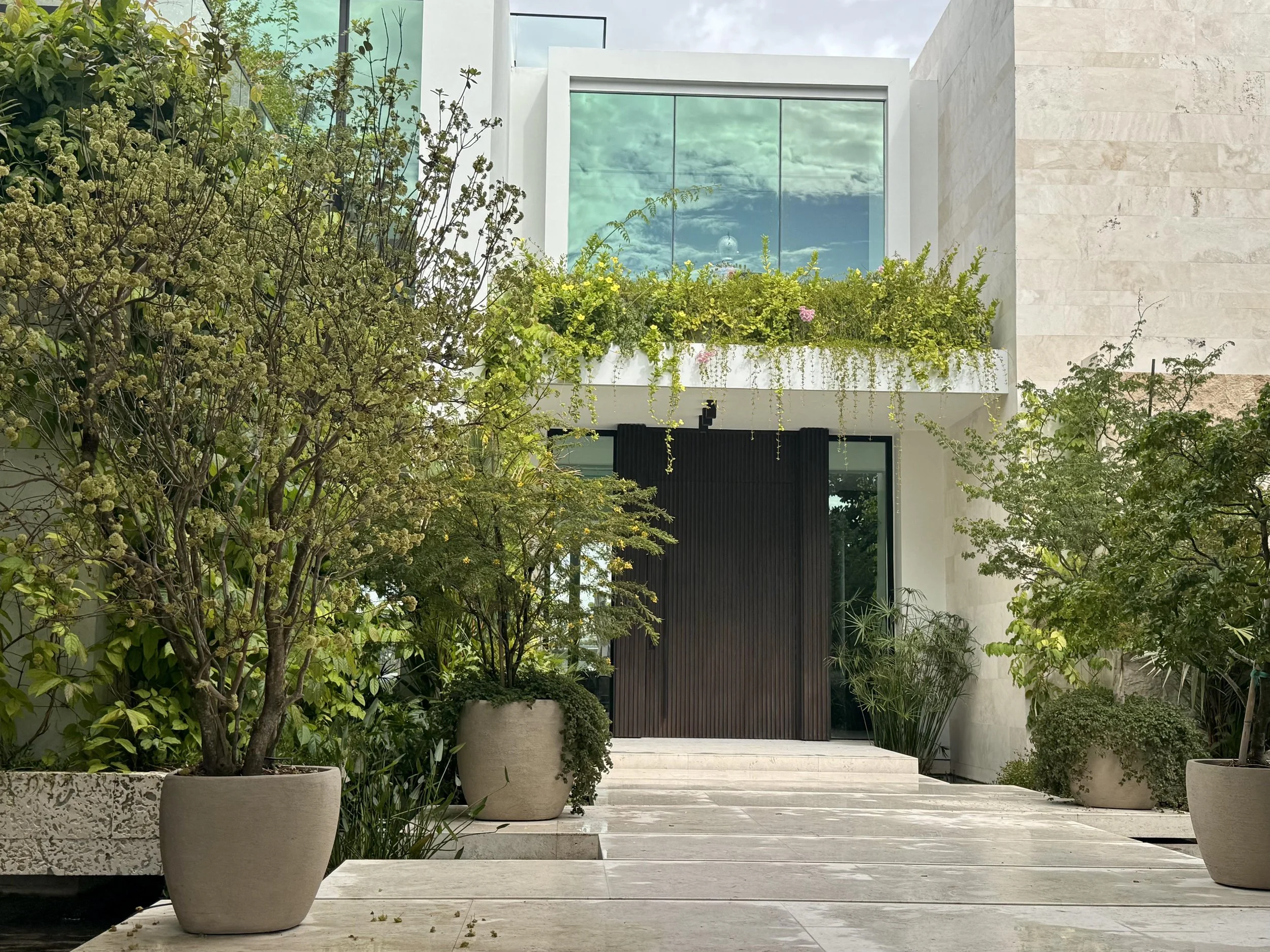 Suspended oolite planter cascading gardens by La Casonas in collaboration with Sean Nutter . To Plant a garden where there is a void .