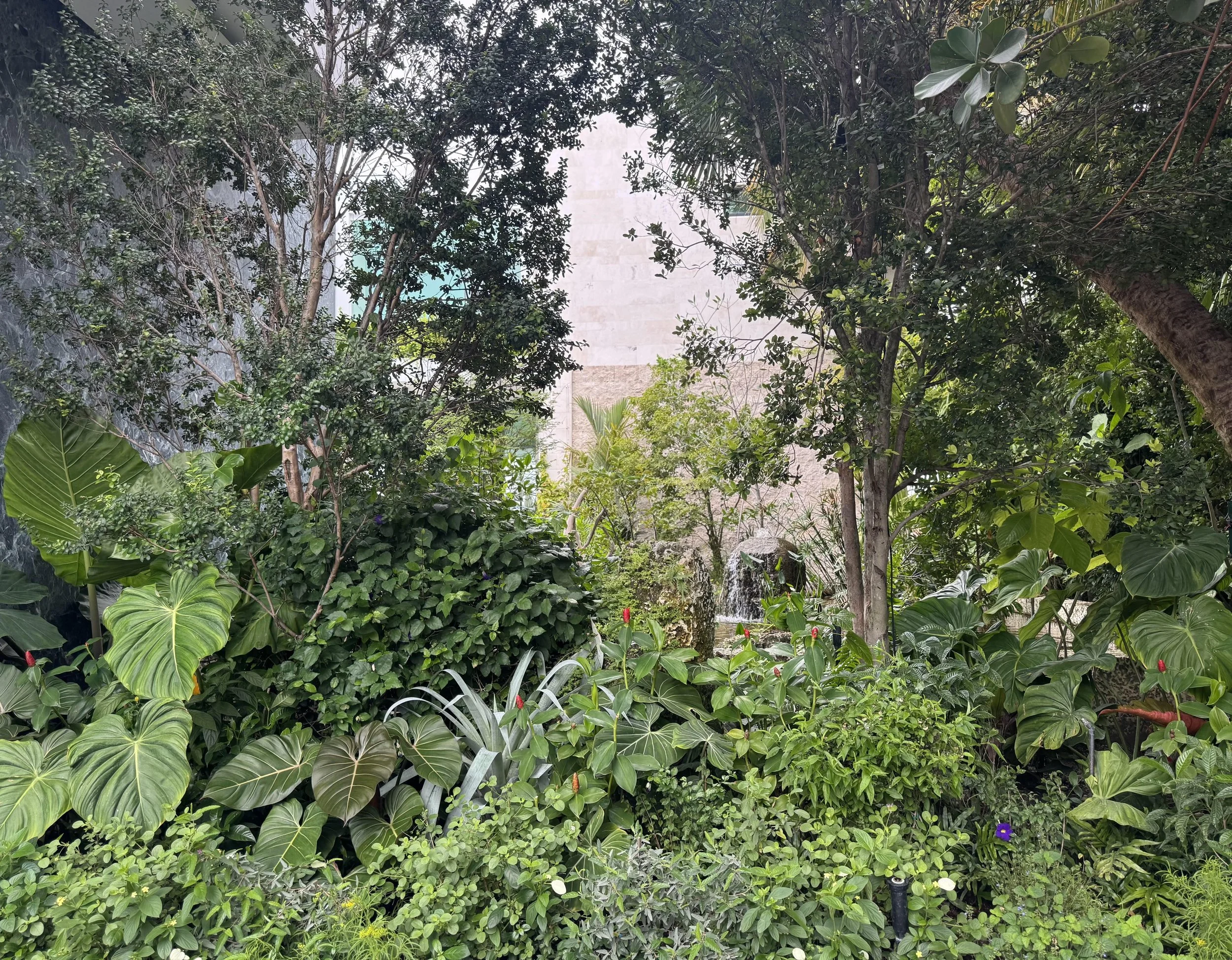 Suspended oolite planter cascading gardens by La Casonas in collaboration with Sean Nutter . To Plant a garden where there is a void .